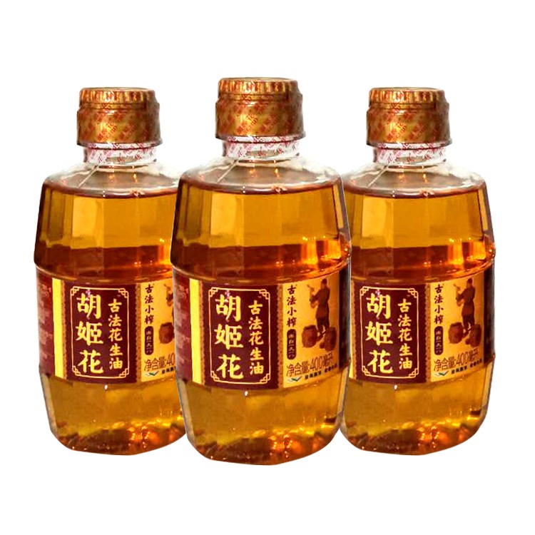 胡姬花古法小榨花生油400ML3瓶压榨一级食用油小瓶