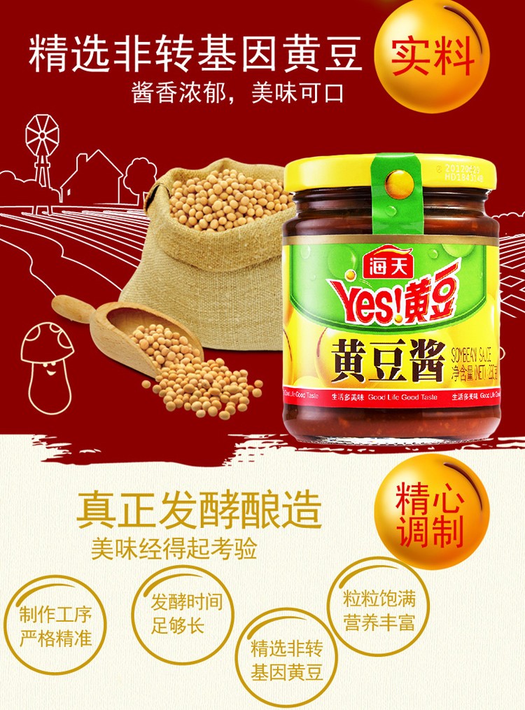 海天黄豆酱烤肉蘸酱拌饭豆瓣酱 230g*3瓶调料下饭