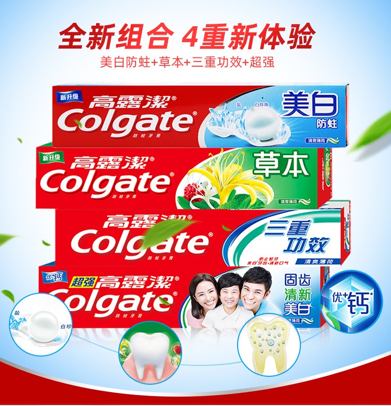 高露洁草本美白牙膏 美白140g*2+固齿140g*2【4支套装】