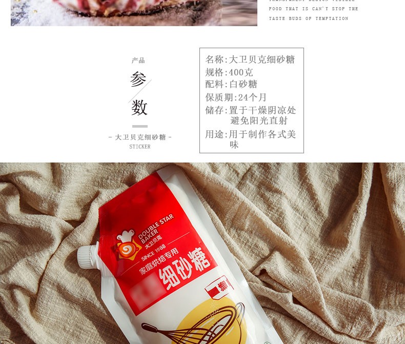 大卫贝克细砂糖400g袋装白糖细砂糖烘焙幼砂糖白沙糖烘培原料包邮